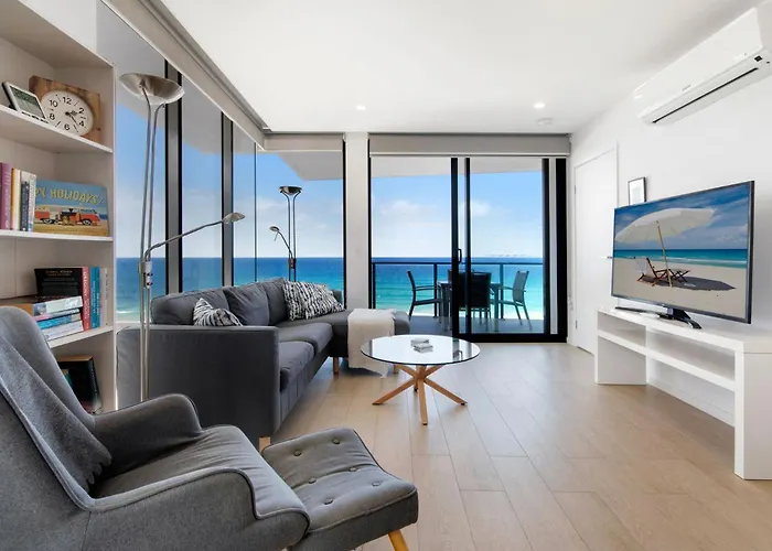 El Ocean Views Apartment With Rooftop Pool - Coasthm tiene acceso a una cocina completa con lavaplatos y un horno. El aeropuerto Gold Coast está a 15 minutos en coche, y la parada de autobús Nineteenth Avenue, a unos cuantos pasos de este establecimiento. Para los amantes del deporte, ofrece actividades como esnórquel, submarinismo y pesca.